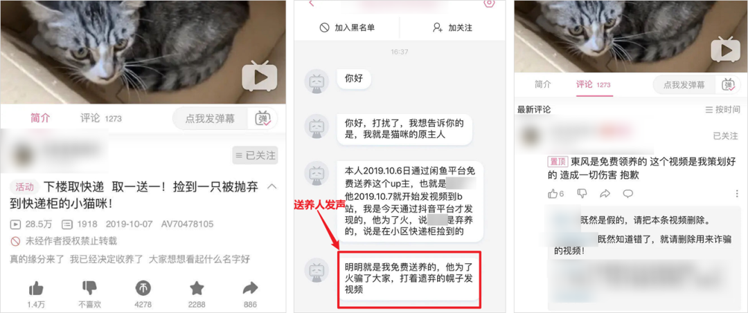 为了给自己塑造“有爱心”的人设,这些人会设计出“收养流浪猫”“在垃圾箱里捡猫”这样的剧情,利用大家的善心来吸引关注: