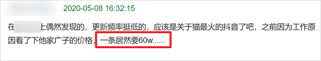 而据网友爆料,一位在抖音上拥有 1200 多万粉丝的宠物博主,一条广告就要 60w: