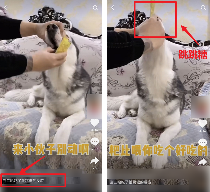 比如这个博主,为了看哈士奇吃跳跳糖之后的反应,硬掰开狗狗的嘴,把跳跳糖灌进去: