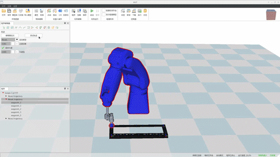 简单直观传统工业机器人的示教器按键繁多,只能通过参数修改轨迹路径点的位置与速度,操作不直观、交互体验较差。RVT可以直接在3D界面中显示机器人和轨迹,基于轨迹规划技术,用户可以直接通过拖动三维路径点或者工件位置,快速更新轨迹,操作更加直观简单。