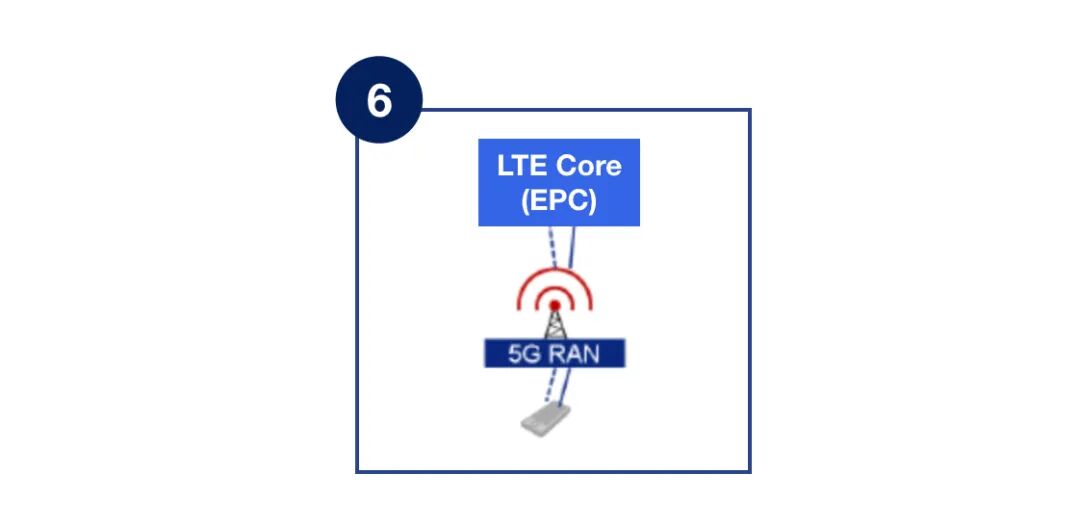 选项5将4G基站连接到5G核心网,与选项7类似,但没有与NR的双连接。