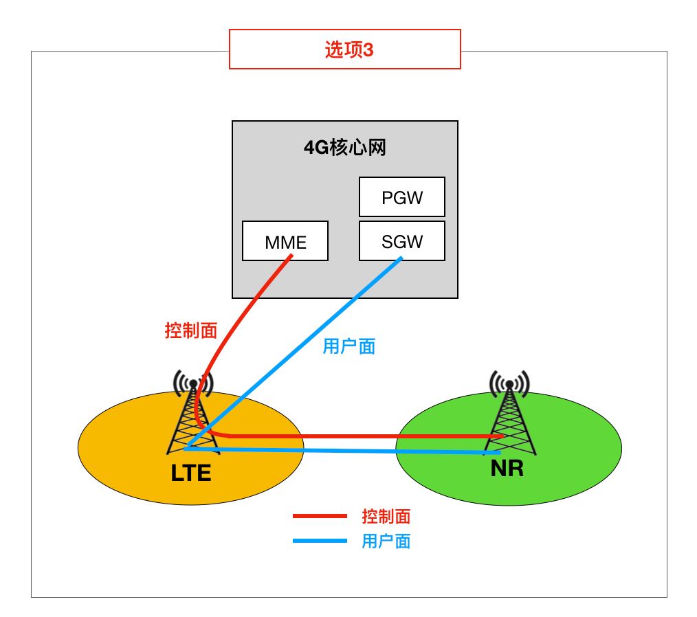 在控制面,选项3系列完全依赖现有的4G系统。但在用户面的锚定点上有区别,这就是选项3系列有3、3a和3x三个子选项的原因。