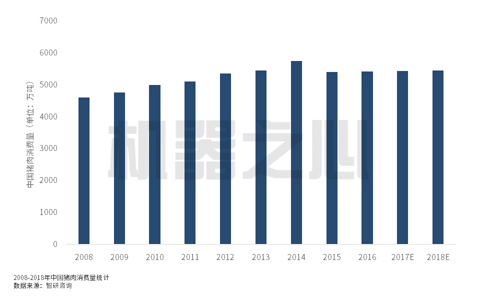 猪肉是我国主要的动物蛋白来源,市场规模庞大,从2010年到2018年,我国生猪年出栏均在7亿头左右,占肉类比重超60%。近几年,由于非洲猪瘟的影响,国内猪肉价格居高不下,因此,发展养猪产业对与保障市场供应、增加农民收入、促进经济社会稳定发展具有重要意义。而传统的养猪方式面临着养殖成本大,生产效率低,养殖环境差的问题,将人工智能技术应用到养殖领域的智能养猪为养猪产业提供了新的发展方向。
