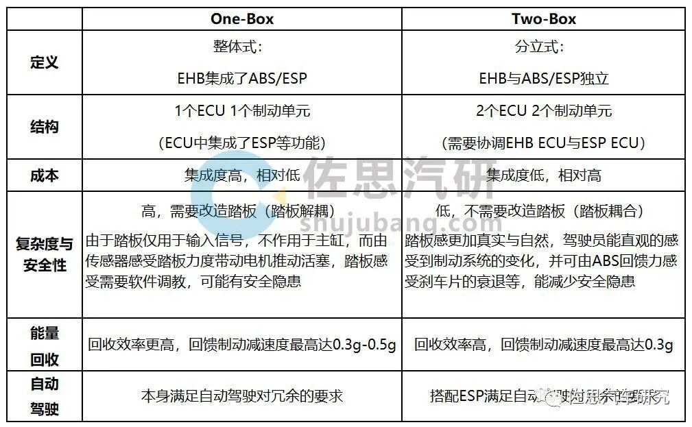 One-Box方案由于将ESP集成在EHB中,需要以成熟的ESP量产经验为基础。由于其在性能、成本等方面的优势,博世、大陆、采埃孚正在逐步加码One-Box产品。