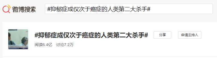 前阵子在热搜上有一个敏感而扎眼的词汇——抑郁症。