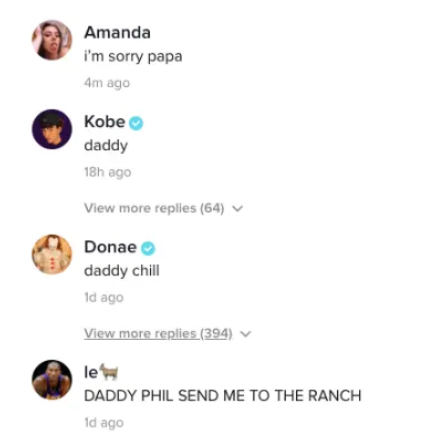 但粉丝们表达仰慕之情的方式有点特别,就是文章开头说的那样,在菲尔的社交媒体和Tik Tok的评论区里面喊“爸爸”。