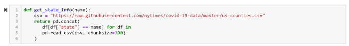 例如,分块技术非常适用于获取指定州的病例数。编写如下的简单函数,就能实现这一功能。