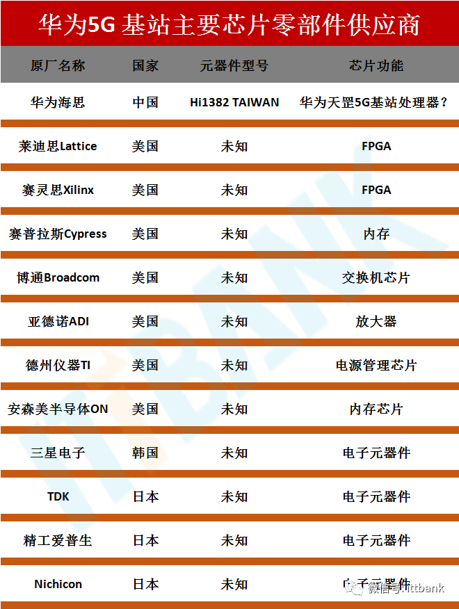 另外,华为基站美国零部件的使用比例达到了27.2%。其中现场可编程门阵列(FPGA)为美国莱迪思Lattice和赛灵思Xilinx公司的产品。FPGA是可提供出厂后一定程度编写程序修改的半定制半导体组件,对于5G基站这种新型事物,各类固件在后期会不断升级,所以对FPGA依赖度极高。