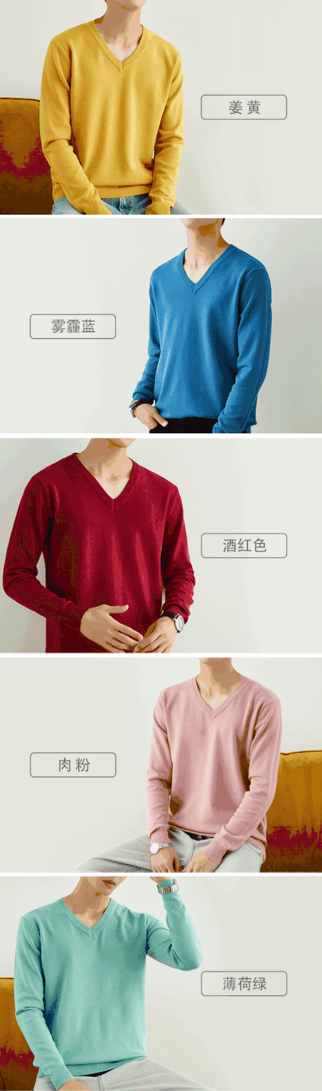 这款针织衫有12种颜色,完全可以满足不同男生的追求。
