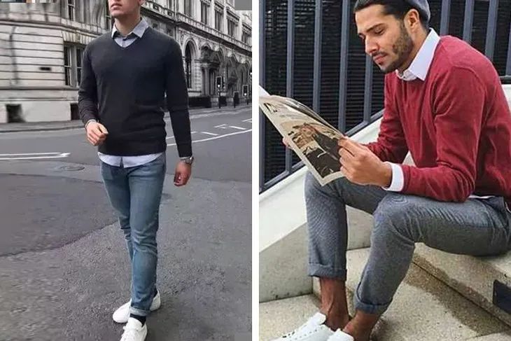 除了圆领,还有V领,更适合叠穿,搭配衬衫、西装时,成熟稳重且层次分明,凸显良好的穿衣品位。