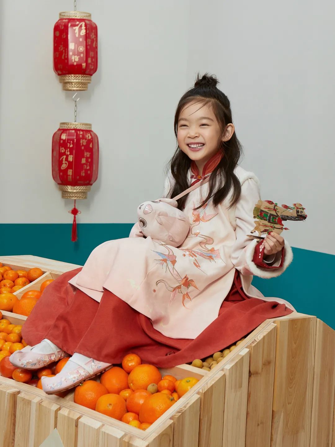 如今大街上的汉服娃娃也不少见,而这一波热潮离不开古装文化大受欢迎的影响。初立是汉莲集团旗下儿童服装品牌,专注萌系儿童汉服,创立于2017年,在此之前已经创建了汉尚华莲、鹿韵记等成人汉服品牌,许多汉服都有亲子装。朱畅后来说,虽然挺不好意思的,但在他家女儿的撒娇下,他们夫妻也分别买了一套亲子装,准备在春节这个传统节日穿上。