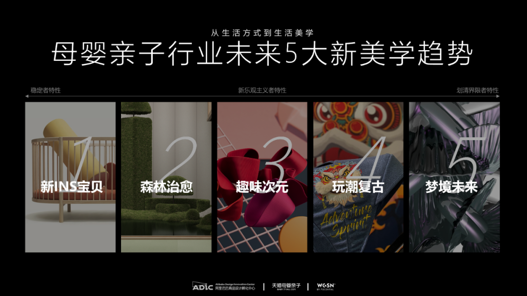 今年5月,天猫母婴正式官宣升级为天猫母婴亲子,这意味着,在母婴亲子领域,天猫市场版图将至少实现翻倍拓张,并计划在2020年孵化1000个千万级超级新品,全面升级品牌商品创新能力。联动原材料供应商的“创新孵化中心”,联合Alibaba Design商品设计孵化中心(ADIC),及全球顶级趋势预测公司WGSN,发布的新亲子新美学设计趋势,天猫母婴亲子不断壮大行业生态,聚焦生态能力的构建与提升。