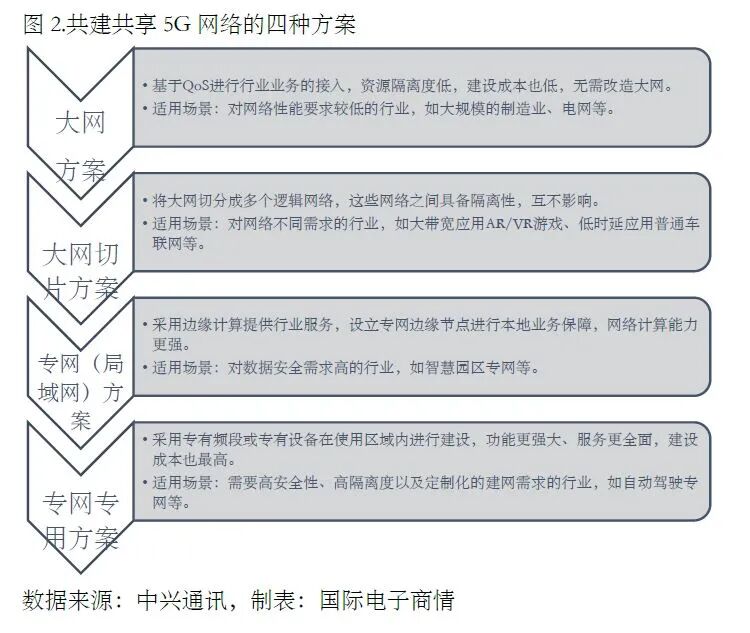 事实上, 5G网络共建共享的可行方案有四种,即大网、大网切片、专网(局域网)、专网专用(图2)。但出于效率、安全性、成本的全方位考量,网络切片成为业界的“团宠”。为它站台的有:3GPP、BBF、GSMA等标准组织;中国移动、联通,韩国KT、SK电信,日本KDDI 和NTT等网络运营商;以及爱立信、诺基亚、华为、中兴等终端设备商。