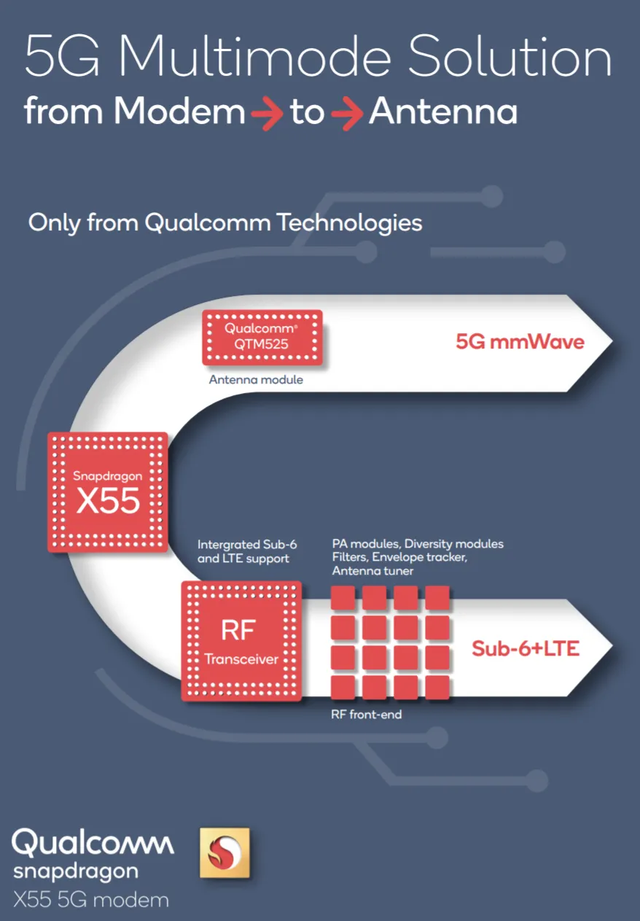 高通是5G mmWave解决方案的全球领导者,所以这次失利进证明了他们的领导地位并非无懈可击。有很多传言称,苹果将开发定制的前端,但大多数人认为那将是针对6GHz以下的组件。相反,苹果正在利用高通SDR865收发器和子系统。