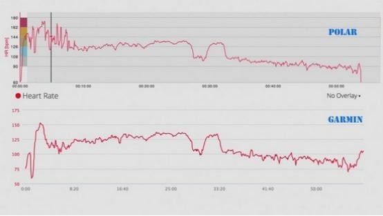 Polar心率带与Garmin Forerunner225运动手表心率数据对比