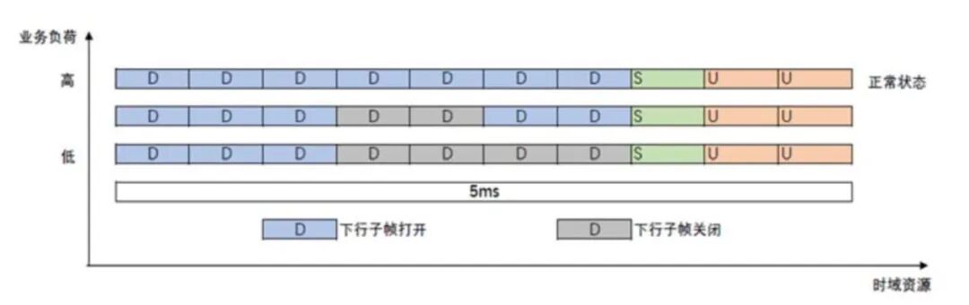 亚帧关断:基站检测到部分下行亚帧(符号)无数据发送时,在此周期内关闭功率放大器等射频硬件,降低静态功耗;功能生效时间颗粒度为微秒级别。