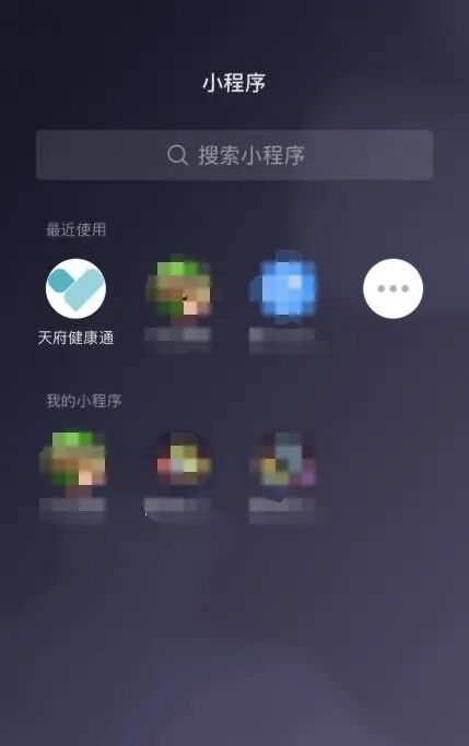 打开微信界面,下滑出现小程序界面,在最近使用中查找或搜索天府健康通,点击进入。