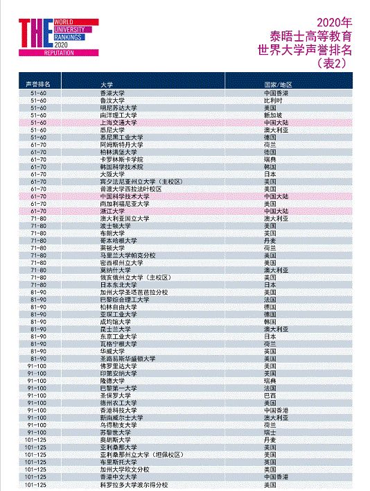 11月3日北京时间晚8点,泰晤士高等教育发布了2020年的世界大学声誉排名。