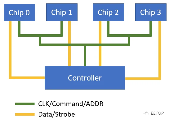 CLK /命令/地址信号具有几乎相同的传播延迟,从而简化了设计过程。但是,T分支拓扑会增加这些信号线的电容负载。