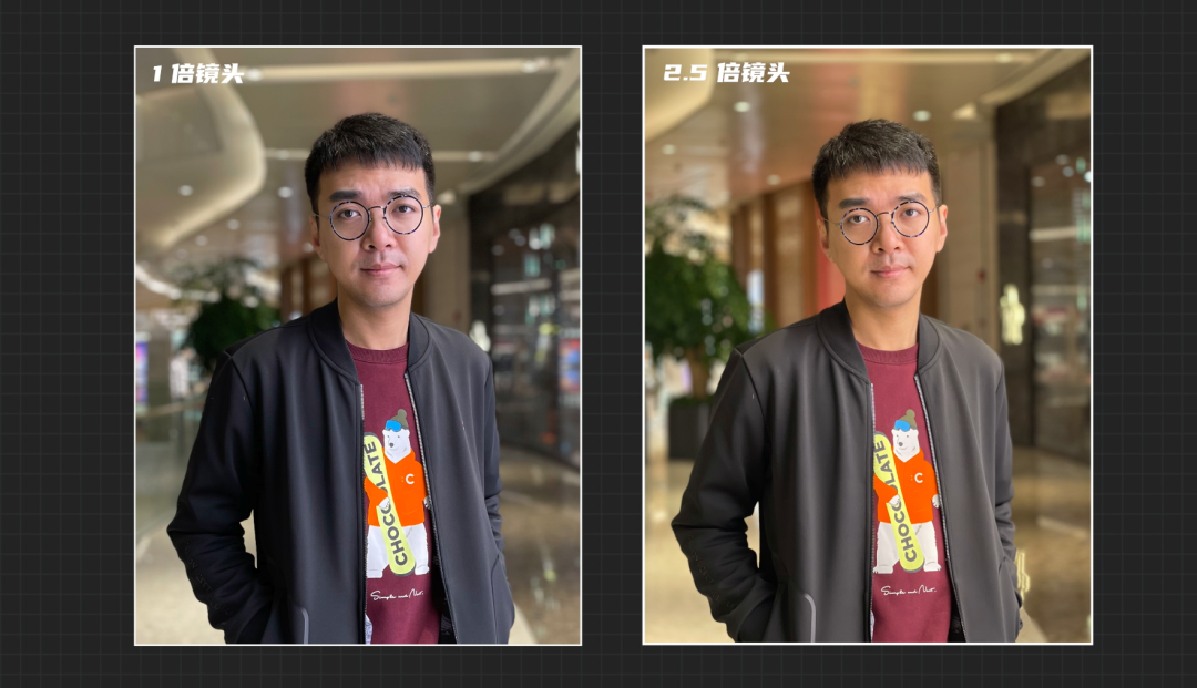 这一次 2.5 倍的镜头除了能够拍摄到更远的景色,从而提供给用户不同的拍摄视角之外,也可以在人像模式中屏蔽掉更多的干扰。由于不同焦段在拍摄人像时会带来不同的空间压缩感,因此 2.5 倍的镜头所拍摄出的样张,更接近于人眼在真实生活中观察到的样子。相比之下,主镜头拍摄的照片会出现鼻子变大、耳朵边小、脸部被缩窄等情况。
