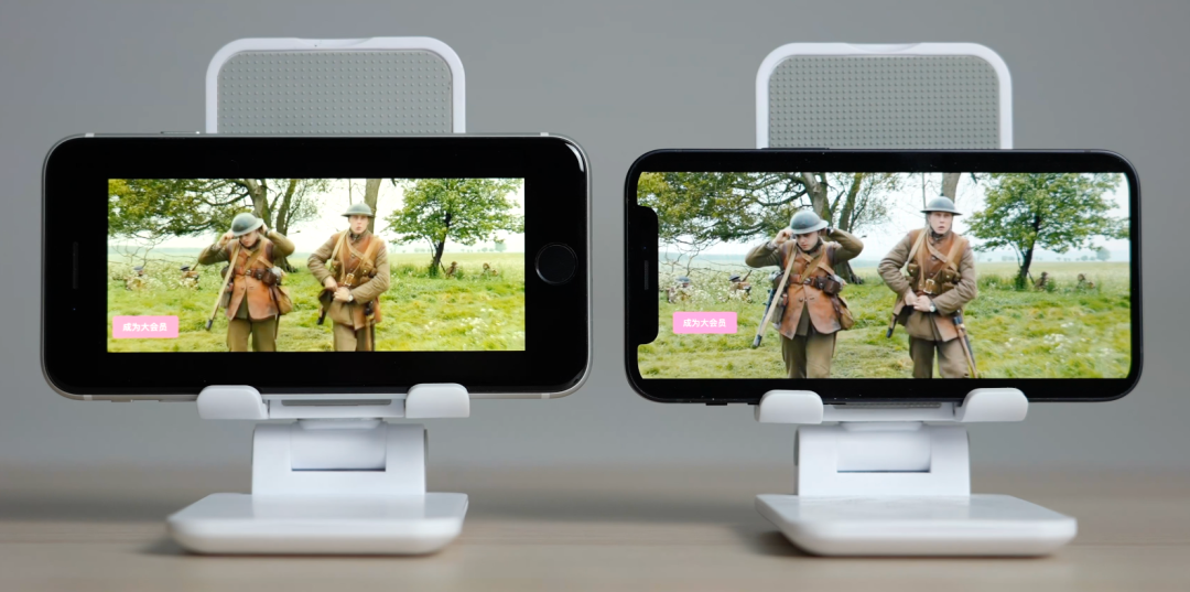 对于视频类的应用,比如腾讯视频或者抖音,在与同尺寸的 iPhone SE2 对比之中,iPhone 12 mini 的在整体体积更小的情况下,反而能够显示更大的电影视频面积,这对于喜欢看电影的用户来说应该是更加有益的设定。
