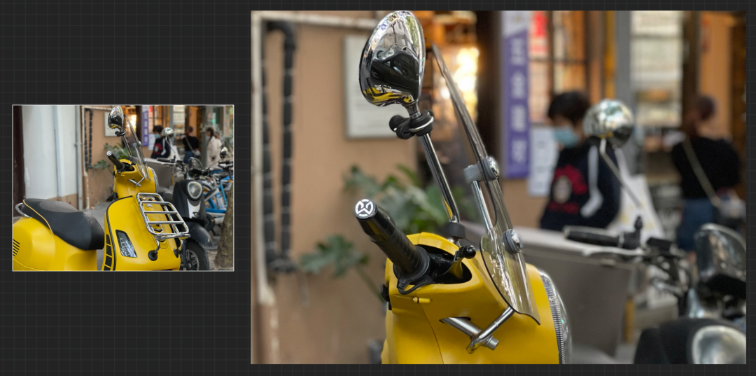 iPhone 12 Pro Max 的人像模式配合新加入的雷达激光扫描仪,能够获得极为出色的景深虚化效果,即使是面对复杂的摩托车轮廓时,也不会出现虚化“翻车”的情况。