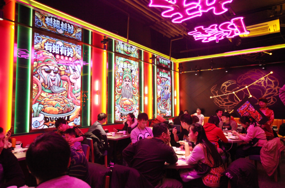 多嘴超级肉蟹煲创新的财神主题国潮店