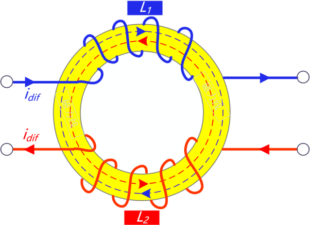 (1)差模电流通过共模线圈,磁力线方向相反,感应磁场削弱,从如下图磁力线方向可以看出—实线箭头表示电流方向,虚线表示磁场方向