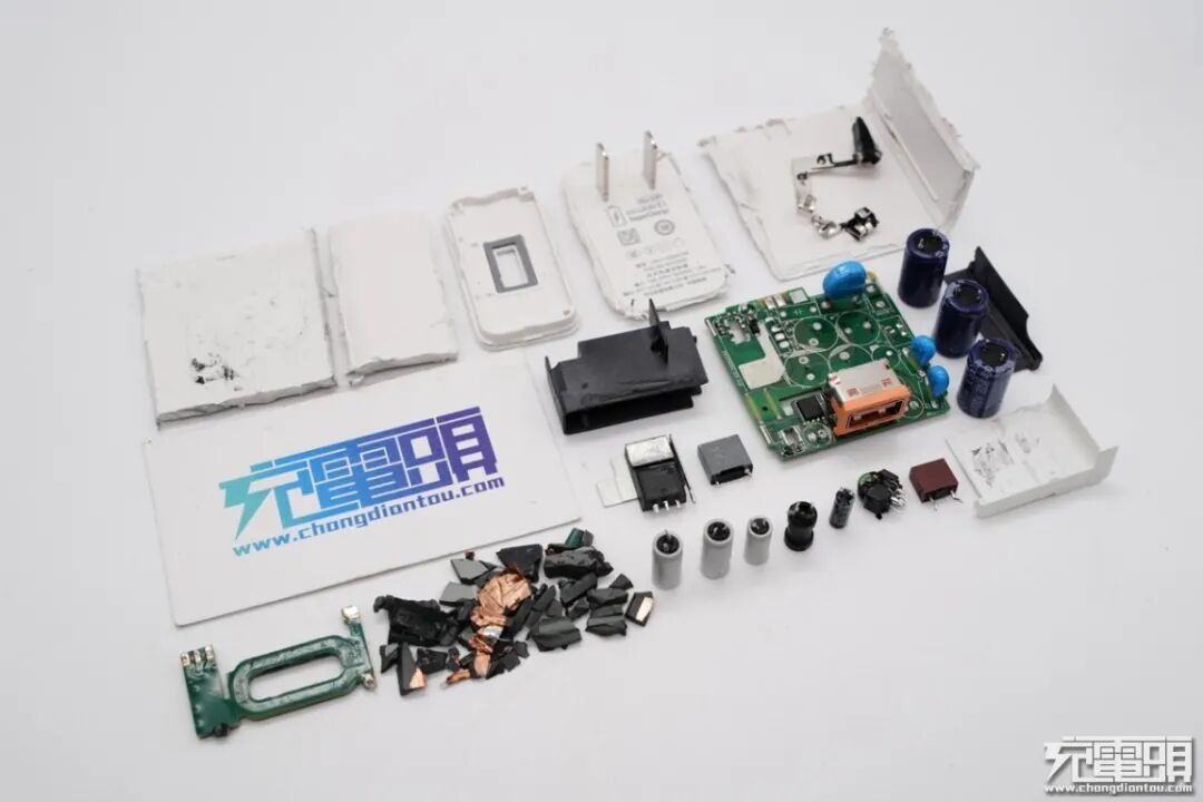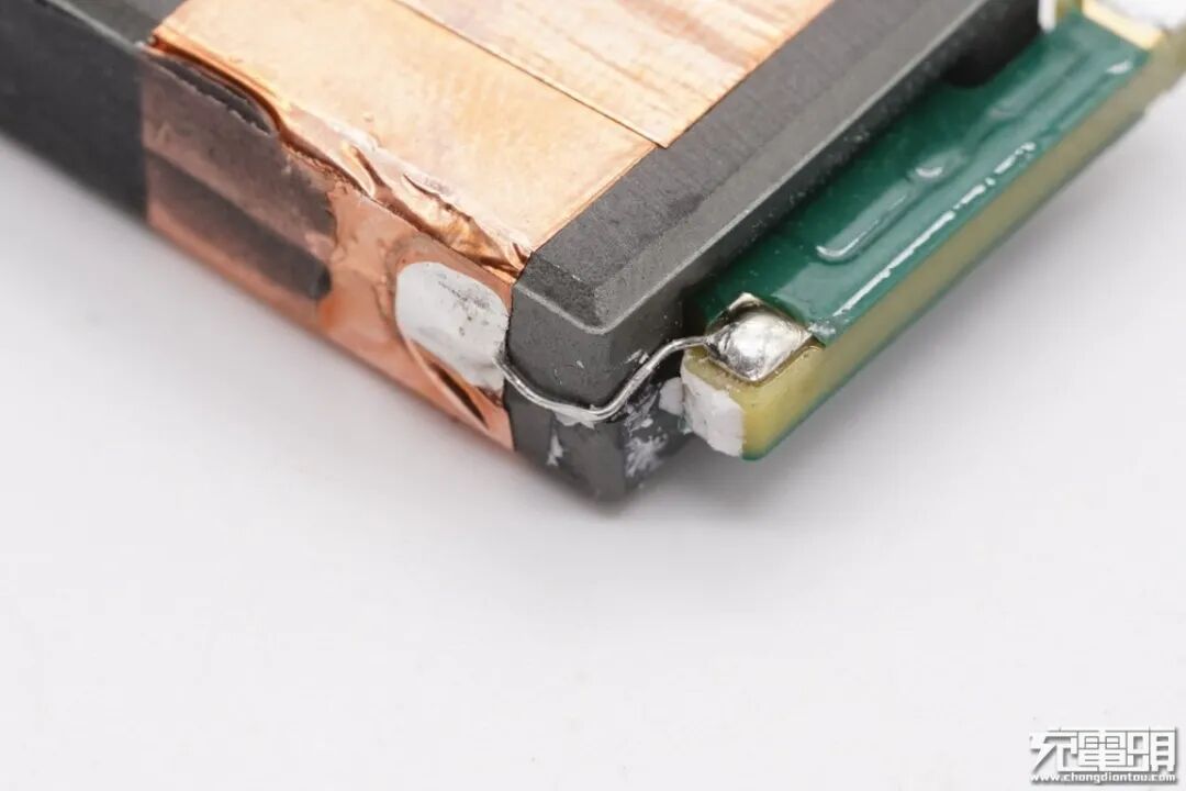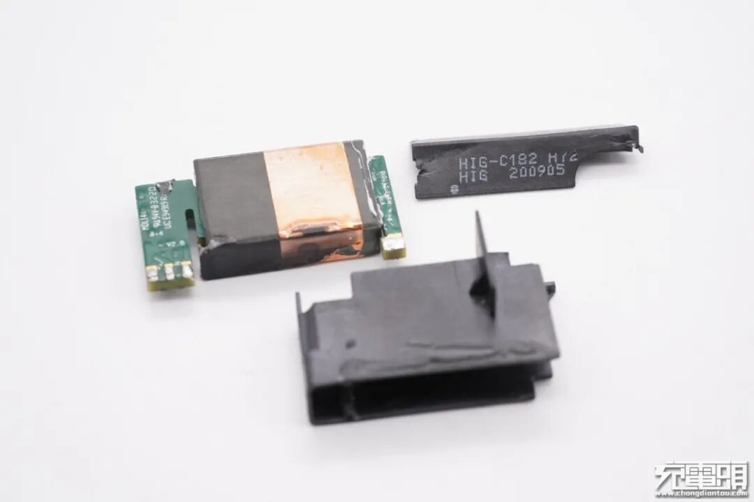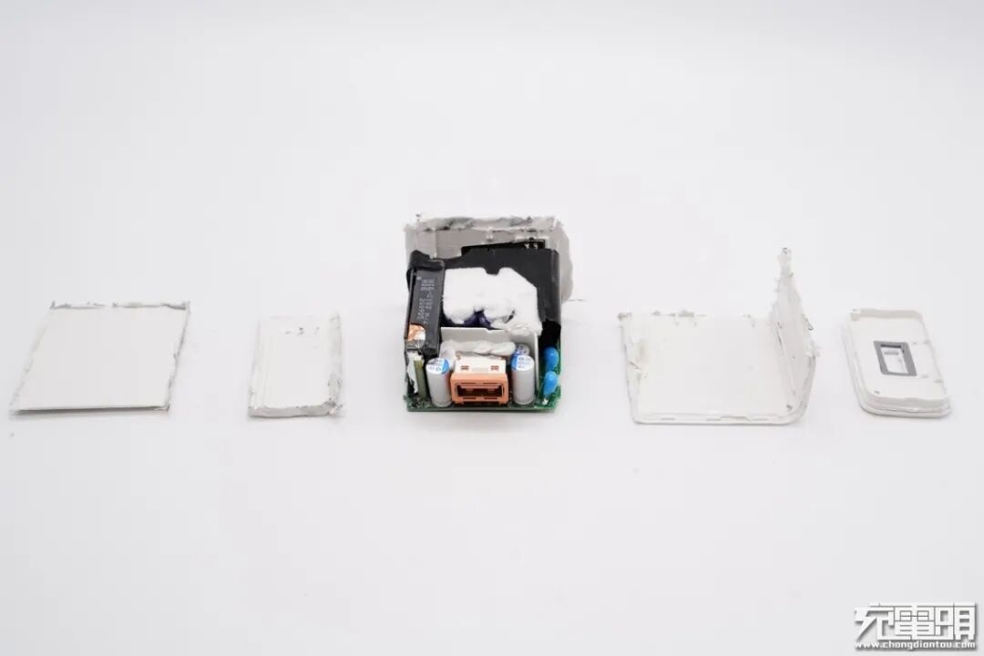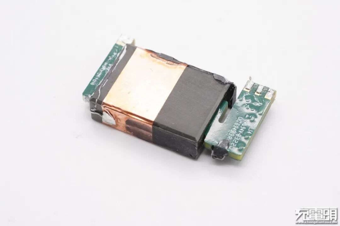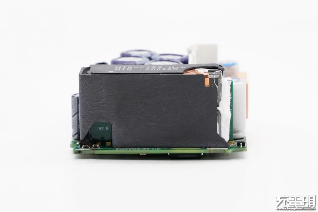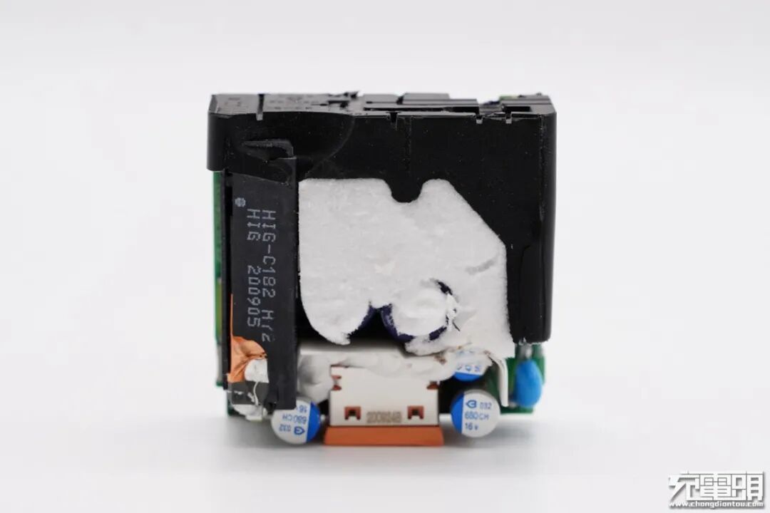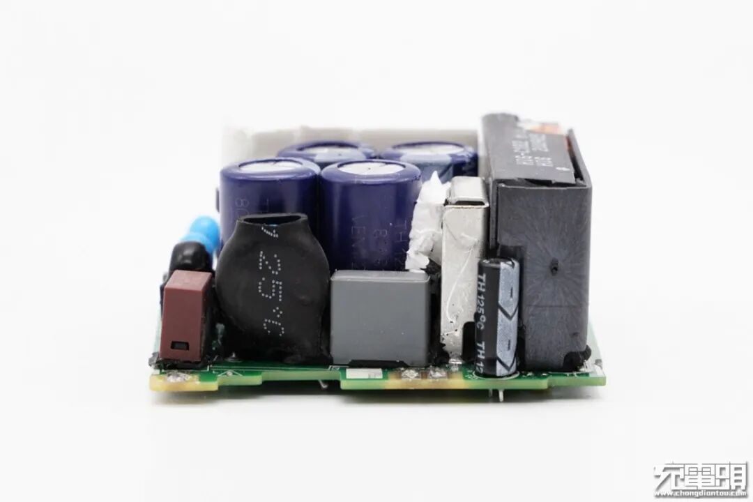 充电器内部左侧平面变压器填充硅胶导热,因此很难将PCB板取出。