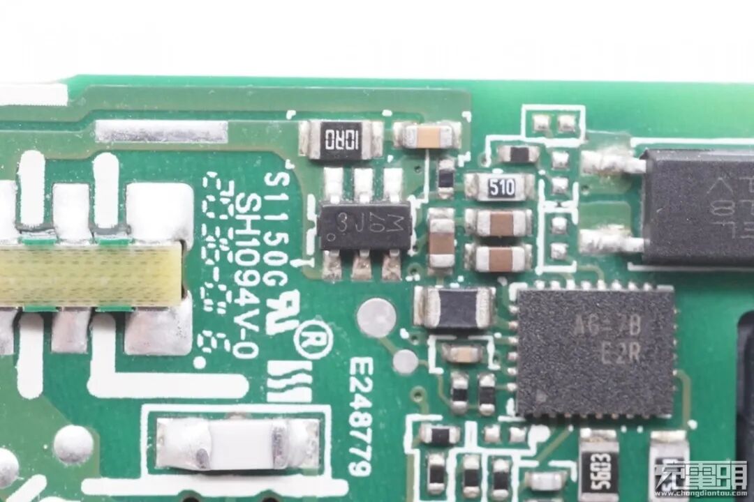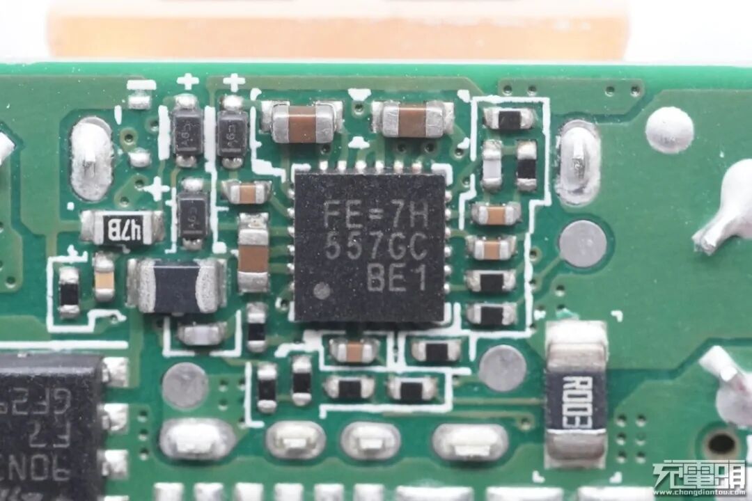 协议芯片同样来自立锜科技,丝印FE=7H,内置同步整流控制器,集成度高。
