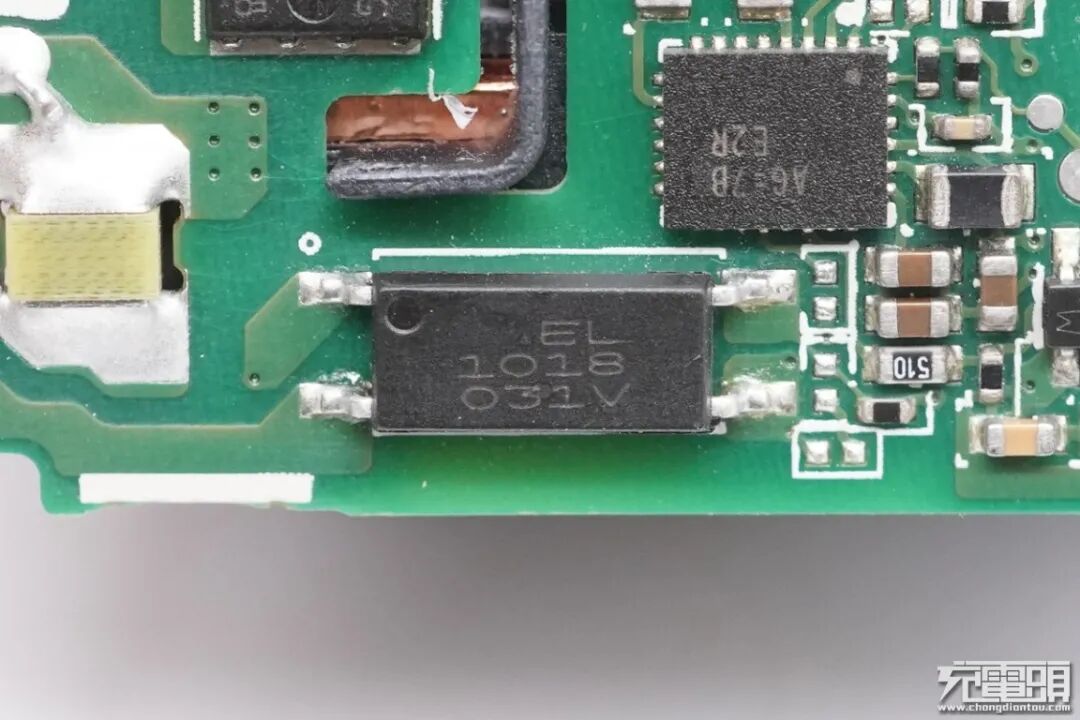 亿光EL 1018光耦,横跨在初级和次级之间,用于初级次级通信,反馈调节输出电压。