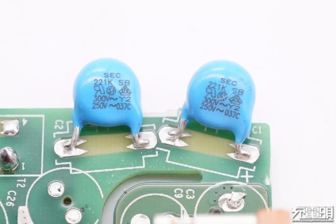 输出抗干扰蓝色Y电容,两颗串联提高耐压等级。