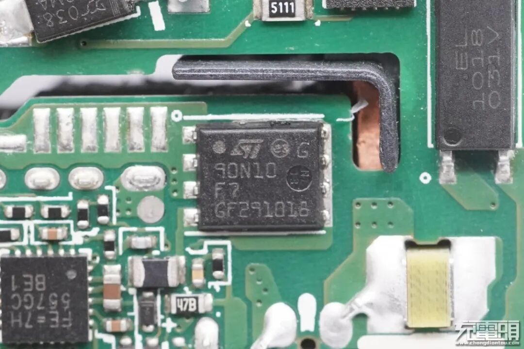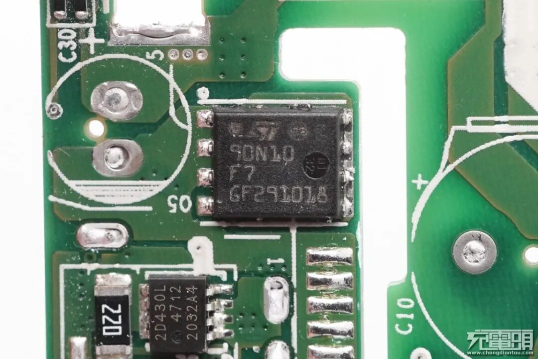 主板背面还有一颗意法STL90N10F7同步整流管,两颗并联。