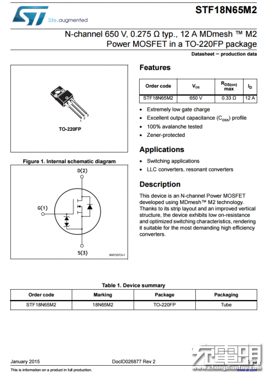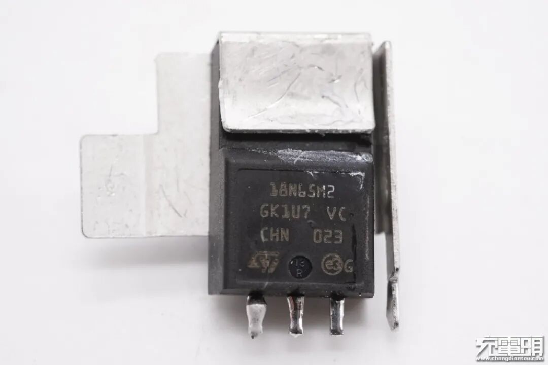 初级开关MOS来自ST意法,型号STF18N65M2,NMOS,耐压650V,导阻0.33Ω。