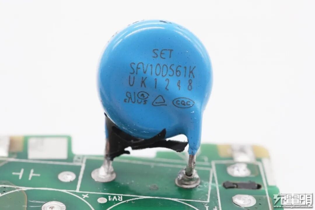 10D561K压敏电阻特写,在输入过压的情况下导通,熔断保险丝,断开电路。