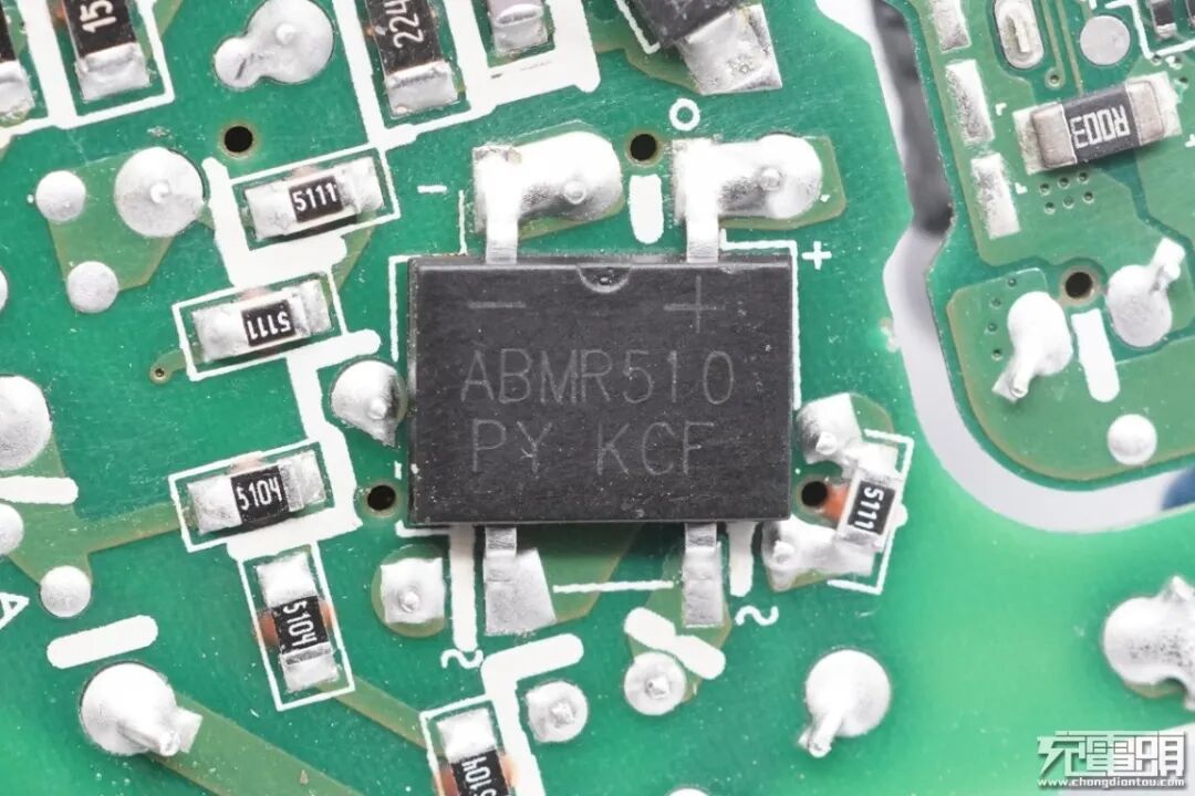 经过对PCB板正背面电路观察分析发现,华为66W超级快充充电器采用开关电源宽范围输出,次级协议芯片控制输出电压的典型架构。下面我们就从输入端开始一一了解各元器件。