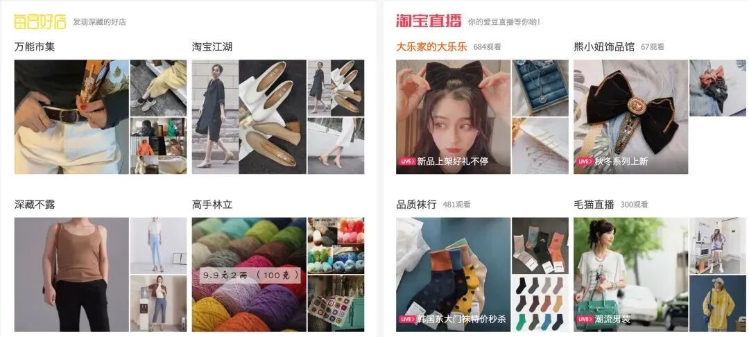 比如,淘宝"猜你喜欢”信息流会为用户推荐多个类目的宝贝、短视频、直播、文章等,来吸引用户停留: