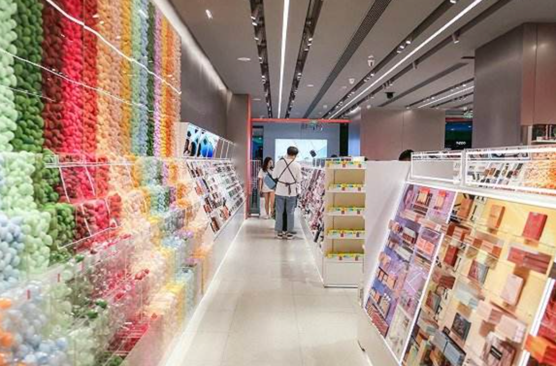 位于北京合生汇的KKV,占地面积200平方米,SKU达到数千支,囊括了彩妆用品、护肤品、零食、母婴用品、快时尚饰品等商品,店员向《灵兽》介绍,因为店比较大,每月总部新品都会在门店上新,店内品牌进行快速迭代。