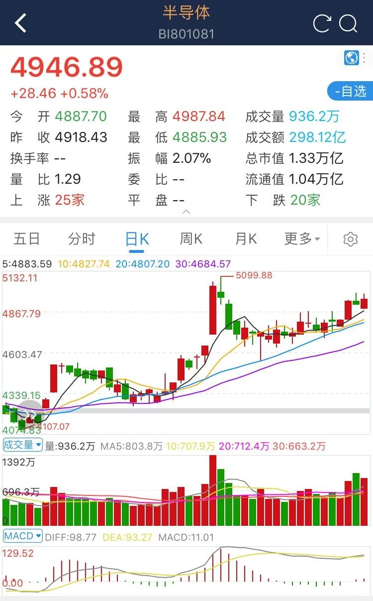 腾讯自选股数据显示,12月3日美股半导体指数ETF(SOXX.US)收盘价格为369.34美元,涨幅为0.13%,总成交量达36.56万股。