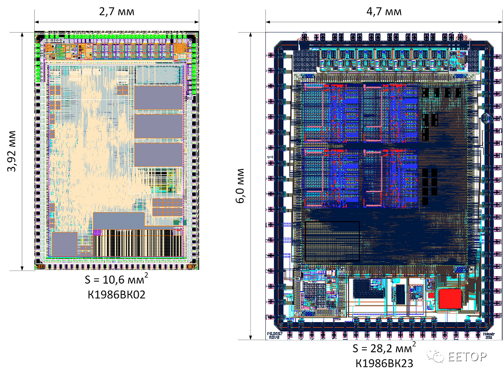 芯片尺寸是芯片成本的主要因素。它的面积越大,价格越贵,生产技术越复杂,价格也就越高。同时,使用的技术越复杂,实现所需功能所需的面积就越小,因此价格会更便宜。总体而言,技术的选择并不明显。第一代K1986BK2x芯片开发于180 nm。大约三分之一的芯片属于模拟部分(实际上是sigma-delta ADC、电源、IO),当切换到更精细的工艺时,当切换到更细微的工艺时,这部分实际上不会减少。但按照新的要求,功能量要增加近4倍。