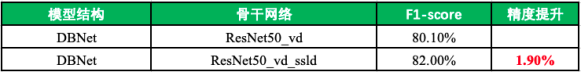 在文字检测任务中(OCR),基于 DBNet 的精度收益如下: