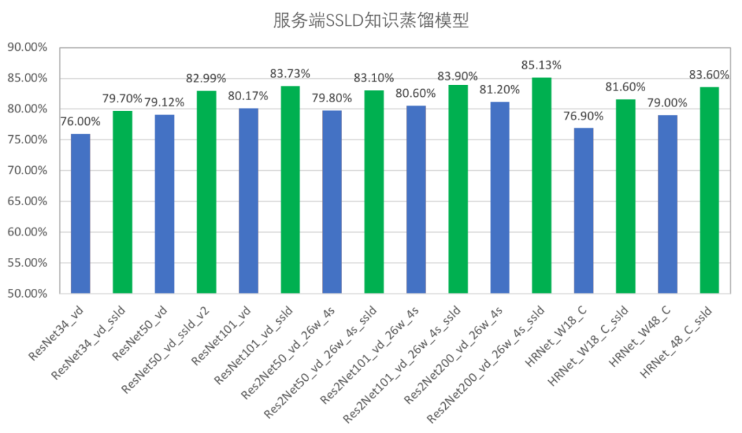 图像分类任务如此重要,但好的分类网络却没有那么容易被训练出来。开发者往往要面临像目标遮挡、尺度变化、变形、背景噪音过大、光照视角多变、目标姿态多变等问题。为了解决这些困难,大家一般需要从数据增广、骨干网络设计、损失定义、优化器设计、模型压缩裁剪量化、模型可解释性、特征迁移学习等不同的角度对图像分类问题进行深入探索。听起来是不是就头大?莫慌!PaddleClas 就是一个超强的图像分类任务的工具集,助力开发者训练出更好的视觉模型并快速应用落地。PaddleClas 近期也完成了全新的升级,本次升级之后,PaddleClas 可算成为了地表超强开源图像分类库(不好说『最』,怕被请喝茶)。那这个称号是从哪里来的呢?让我们用事实说话,看看 PaddleClas 升级后到底有多强大!更高精度的模型:基于百度自研的知识蒸馏方案(SSLD),PaddleClas 开源了 14 个 SSLD 分类预训练模型,精度普遍提升 3% 以上;其中 ResNet50_vd 模型在 ImageNet-1k 数据集上的 Top-1 精度达到了 84.0%,Res2Net200_vd 预训练模型 Top-1 精度高达 85.1%。同时也优化出更多业界 SOTA 模型,并支持图像检测、分割以及 OCR 等高阶视觉任务全面提升模型效果;