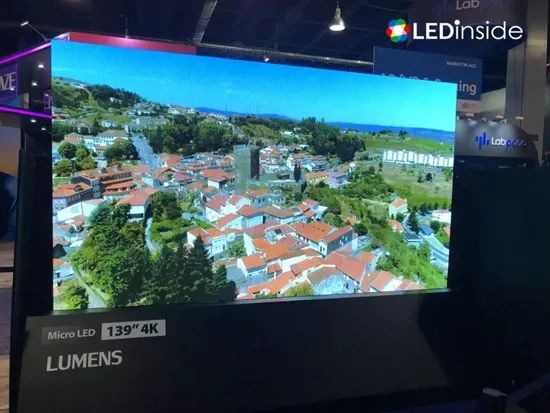 在1月份的CES 2020上,TCL展出了其最新打造的132英寸4K Micro LED显示器。该显示器由2400万颗LED组成,由聚积科技提供48通道驱动IC。同时,TCL旗下子公司TCL VERY Lighting展出一款透明的RGB Micro LED显示器。屏幕尺寸仅48*48mm,LED芯片尺寸仅100*60μm。该款显示器与亿光电子合作,希望未来能导入车载的显示器作为信号指示用途。Lumens推139英寸4K Micro LED显示器同样在CES 2020展上,韩国LED厂Lumens推出139英寸的4K Micro LED显示器,点间距约为P0.8mm,利用该模块制作成车载面板,可以呈现出高对比的显示效果。此外,Lumens还展出过一款0.57英寸的Micro LED显示器,尺寸仅10um,搭配CMOS背板驱动的单色Micro LED显示器,有蓝色和绿色两款。友达与錼创科技进行合作,双方在4月份推出了9.4寸高分辨率柔性Micro LED显示器,具备228 PPI像素密度,除适用于车载显示市场外,也可应用于可穿戴、消费等市场。