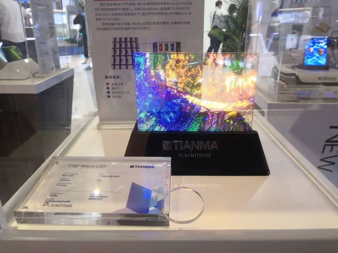 图片来源:友达今年7月份,雷曼光电正式发布Micro LED像素引擎显示技术,并宣布量产点间距为P0.79mm与P0.63mm的Micro LED超高清显示屏。目前,雷曼光电基于COB技术,点间距为P0.6mm、P0.7mm、P0.9mm、P1.2mm、P1.5mm和P1.9mm的Micro LED超高清显示屏已全部实现量产。天马推出7.56英寸AM Micro LED显示屏在今年7月份的DIC展上,天马携手錼创科技推出一款7.56英寸AM Micro LED显示屏。该显示器分辨率为,透明度超过60%,超窄边框能带来更佳的视觉体验。9月份,LG推出首款163英寸4K Micro LED电视“LG MAGNIT”。该Micro LED电视基于COB技术,点间距为P0.9mm,屏幕由多个640×360的显示模块无缝拼接而成,面向市场为室内商业以及高端民用。9月份,利亚德在InfoComm China展上推出一款自主研发的216英寸的8K Micro LED显示屏“THE GREAT SPACE”,点间距仅为P0.6mm。此外,利亚德还量产了P0.4、P0.6、P0.7、P0.9四款标准化Micro LED自发光显示模组。另外,7月份,利亚德旗下全资子公司PLANAR发布了三款Micro LED电视,分别是216英寸8K产品、135英寸4K产品和110英寸产品。同年7月份,PLANAR联合国美正式发售135寸4K Micro LED电视,定价在17万元左右。群创发布24.6英寸全彩AM Micro LED显示器今年10月份,群创在OPTO TAIWAN国际光电大展上首次发布一款24.6英寸的全彩AM Micro LED显示器。该显示器采用了四片12.3英寸的Micro LED显示器所拼接而成采用蓝光Micro LED加上量子点的光色转换方案。TCL华星联合三安推出4英寸IGZO Micro LED显示屏10月份,在TCL华星全球显示生态大会现场,TCL华星展示最新的4英寸IGZO Micro LED显示屏,目前仍为实验室产品。该产品由TCL华星与三安光电联合实验室开发的基于IGZO玻璃基的AM Micro LED显示屏,采用领先的uLED巨量转移技术,具备高亮度、高色域、高对比度等特点,还可以实现双面显示。国星光电开发出主动式驱动Micro LED全彩显示屏11月30日,国星光电公布Micro LED技术研发的最新进展。在第一代Micro LED显示屏的基础上,国星已与面板厂合作开发出基于TFT玻璃背板的主动式驱动Micro LED全彩显示屏。近日,采用自主研发的巨量转移技术,已经初步实现250PPI以上红/绿/蓝单色转移键合点亮。12月10日,三星110英寸Micro LED电视在韩国正式开启预售,并将于2021年第一季度在全球发售。该款电视拥有99.99%的屏占比,定位大众消费市场,售价1.7亿韩元(约合102.6万元人民币)。另外,在今年的ISE展上,三星展示一款583英寸的8K企业级Micro LED显示器“The Wall”,新款取代了三星到目前为止提供的最大的437英寸面板。新款“The Wall”还具有219英寸和292英寸的4K版本。6月份,据报道,韩国研究者宣布开发出可折叠的氮化镓(GaN)Micro LED,并且可用剪刀剪切。研究者表示,由于Micro LED具有柔性,所以可附着在织物或皮肤等弯曲表面上,扩大了其应用的可能性。ALLOS与KAUST合力研发高效硅基InGaN红色Micro LED7月份,德国硅基氮化镓专家ALLOS Semiconductors宣布与沙特阿卜都拉国王科技大学(KAUST)研究团队达成合作,双方将共同研发高效硅基InGaN红色Micro LED。据了解,ALLOS与KAUST本次合作将致力于解决大晶格失配和量子限制斯塔克效应等限制红色氮基LED在实际工业应用中的使用基本问题。台交大与晶呈科技成功开发磁性Micro LED转移方案10月份,台交大电子工程系洪瑞华特聘教授兼系主任和晶呈科技股份有限公司执行科技部产学计划,已成功在特殊的铜磁基板上开发Micro LED,具有超薄(仅50微米)免研磨且可使用化学蚀刻进行芯片分割。此技术将使得Micro LED芯片本身不再脆弱,并可使用磁性探针卡进行巨量微整预排列与巨量转移,一举突破传统的空气吸取芯片限制,有机会大幅降低目前Micro LED显示器价的制作成本。11月1日,美国Micro LED技术开发商VerLASE宣布其Micro LED巨量转移技术获得了实质性的进展。VerLASE的Micro LED技术通过印章转移结构和能够准确抓取大量Micro LED的新型化学机制,将Micro LED芯片转移到所要求的衬底上,再以高精度和高速度进行分配和放置。Porotech推出商业化InGaN红光Micro LED外延11月份,从剑桥大学分拆的公司Porotech宣布推出全球首款商业化的用于Micro LED应用的原生红光LED外延。Porotech生产的工艺突破扩展了InGaN的发射范围,从而可以满足红光显示的性能需求,同时具有扩展Micro LED半导体显示技术所需的晶圆尺寸的能力。11月份,江风益院士团队公布了最新研制的高光效氮化铟镓基橙-红光LED结果。此项研究基于硅衬底氮化镓技术,可大幅缓解了红光量子阱中高In组分偏析问题。使用该技术可成功制备一系列高效的InGaN基橙-红光LED,光效相较于以往报道的相同波段InGaN基LED结果整体提高了约十倍。Aledia成功利用12英寸硅晶圆开发Micro LED
