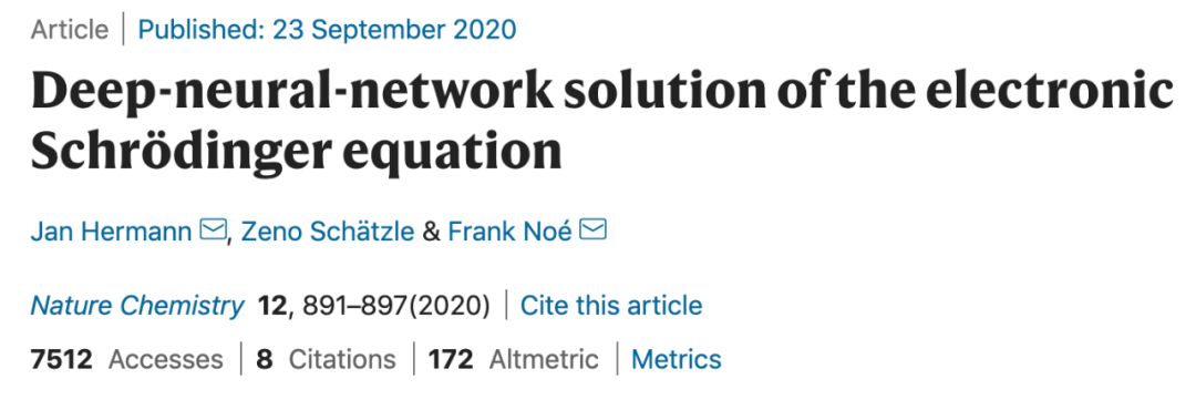 在经典力学里,人们使用牛顿第二定律描述物体运动。而在量子力学里,类似的运动方程为薛定谔方程。薛定谔方程的解完备地描述物理系统里微观尺寸粒子的量子行为,包括分子系统、原子系统、亚原子系统。微观系统的状态由波函数来描写,薛定谔方程即是波函数的微分方程。若给定了初始条件和边界的条件,就可由此方程解出波函数。另外,薛定谔方程的解还可完备地描述宏观系统,可能乃至整个宇宙。求解薛定谔方程可以为化学反应提供线索。化学反应的结果基本上与电子以及它们环绕原子和分子的方式有关。而控制事物反应的能量以及电子在分子中的轨道的差异决定了化学物质的形状,也由此决定了其性质。计算这一能量的方式就是求解薛定谔方程。换句话说,求解出薛定谔方程,就可以知道化学反应的结果。然而,这并非易事。此前,我们可以精确求解的原子只有氢原子——仅具备一个质子和一个电子。最近,来自柏林自由大学的科学家提出利用人工智能计算薛定谔方程的基态解,相关研究发表在 Nature Chemistry 上。