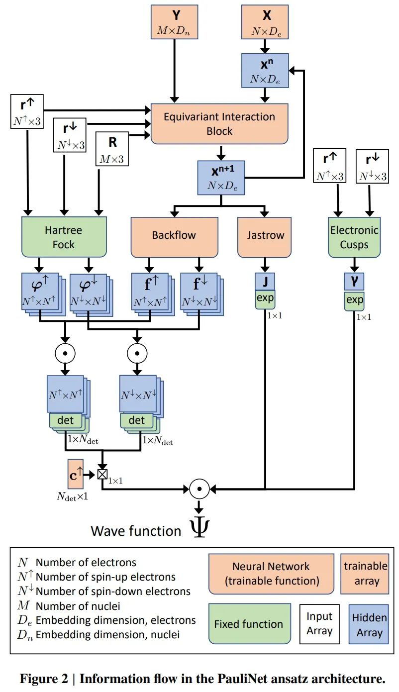 该研究作者之一 Frank Noé 教授表示:「我们认为这一方法或将极大地影响量子化学的未来。」波函数是量子化学和薛定谔方程的关键所在,是一种描述分子内电子行为的函数。它是一种高维实体,这使得捕获编码特定电子之间相互影响方式的频谱变得极度困难。量子化学领域中的许多方法不再只是尝试以数学方式获得特定分子的能量,但这需要近似值,限制了预测的质量。还有一些利用大量简单数学构造块表示波函数的方法,但这些方法过于复杂,难以针对较多原子计算波函数。该研究一作 Jan Hermann 设计了新方法的关键特征,他表示:「避免在准确度和计算成本之间进行权衡是量子化学的最高成就。」Hermann 表示:「到目前为止,最流行的方法是极具成本效益的密度泛函理论。我们认为我们提出的深度『Quantum Monte Carlo』方法至少可以达到同样好的效果。该方法以可接受的计算成本提供了前所未有的准确度。」该研究设计了一个深度神经网络来表示电子的波函数,这是一种全新的方法。Noé 解释说:「我们没有使用用相对简单的数学成分组成波函数的标准方法,而是设计了一种人工神经网络,它能够学习电子围绕原子核运动的复杂模式。」Hermann 表示:「电子波函数的独特性在于反对称性。在交换两个电子时,波函数需要改变符号,我们必须将这种特性引入到神经网络架构中才能使之奏效。」受到「泡利不相容原理」(Pauli exclusion principle)的启发,研究者将他们的方法命名为「PauliNet」。它是一种深度学习波函数拟设,可以获得电子薛定谔方程的近乎精确解。PauliNet 具有一个作为基线的内置多参考哈特里-福克(Hartree–Fock)解,集成有效波函数的物理特性,并使用变分量子蒙特卡罗方法(variational quantum Monte Carlo, VMC)进行训练。