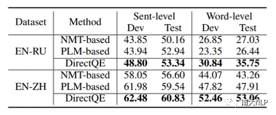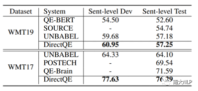 大规模的QE模型需要大规模数据进行参数训练。现有的两阶段方法,由于数据和训练目标差异,无法最大化利用大规模平行语料知识。我们提出一种直接为QE模型进行预训练的框架(DirectQE)——使用生成器由平行语料得到伪QE数据,而后使用判别器,在伪QE数据上进行预训练,并且使用真实QE数据微调。我们模型的优势是,参数规模更小,模型性能更好,并且易于使用。未来,我们将考虑使用更多样化的方式来构造伪QE数据,进一步缓解数据差异带来的影响,最大程度利用大规模语料,提升QE模型性能。