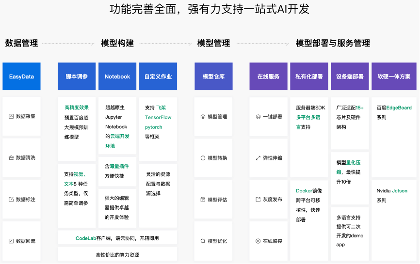 周期管理。BML为企业和个人开发者提供机器学习和深度学习一站式AI开发服务,并提供高性价比的算力资源,助力企业快速构建高精度AI应用。BML提供了从数据采集、数据清洗、数据标注、智能标注与多人标注、模型训练生产到模型管理、云端及离线推理服务管理等AI开发过程的全生命周期管理。