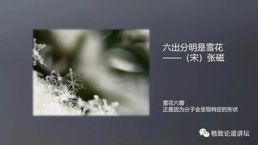 比如平常的雪花是六角形的,这个六角形是怎么来的呢?