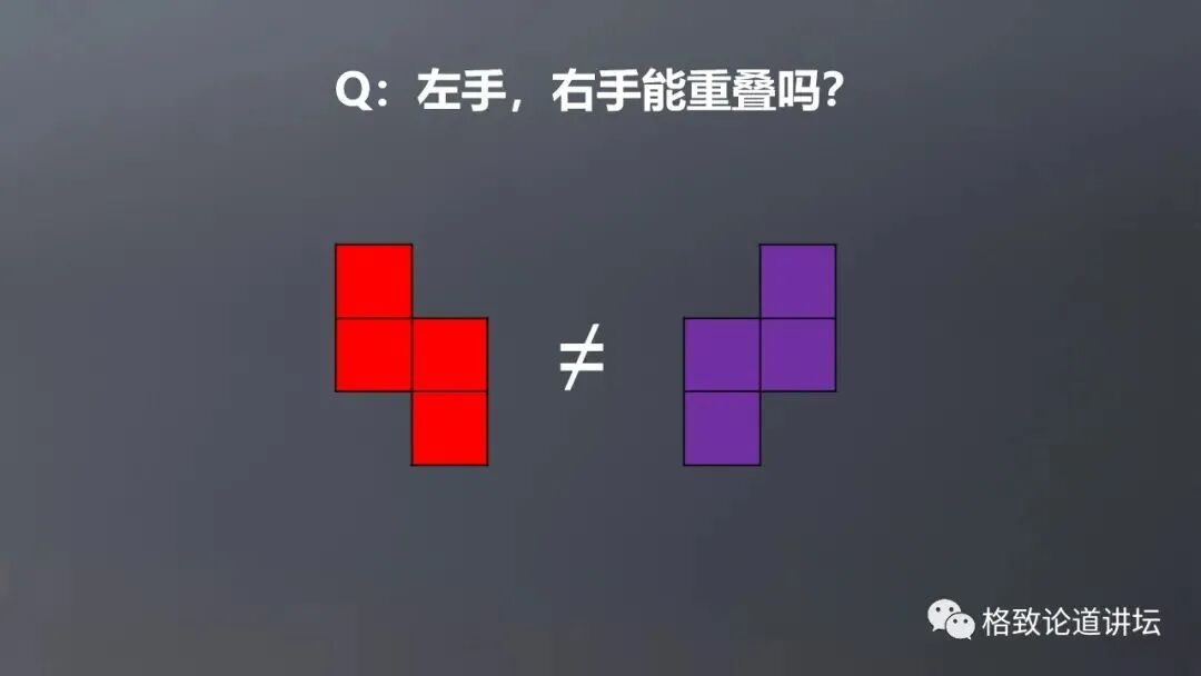 但是是不能够完全重合的,你可以区分出左手和右手。